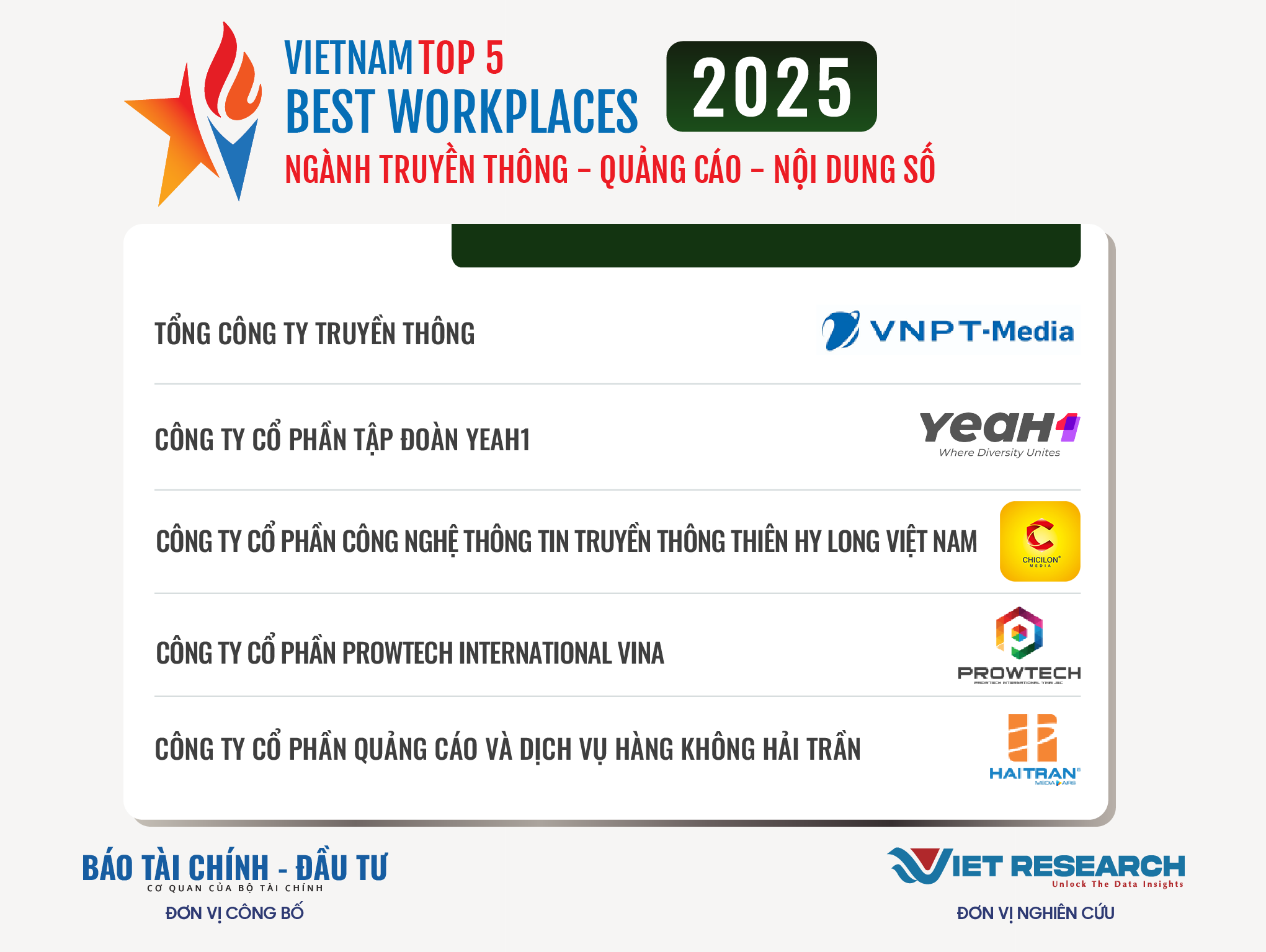 Năm 2025 là năm thứ tư liên tiếp Chương trình Top 10 Nơi làm việc tốt nhất Việt Nam – VBW10 trong các ngành kinh tế trọng điểm được Viet Research và Báo Tài chính – Đầu tư (Bộ Tài chính) nghiên cứu và công bố. Đây là chương trình thường niên nhằm tìm kiếm và tôn vinh những doanh nghiệp có môi trường làm việc tốt nhất trong các ngành, các doanh nghiệp tuyển dụng hàng đầu Việt Nam, những thành tố quan trọng tạo cơ hội việc làm, góp phần chung vào sự phát triển bền vững của đất nước và nền kinh tế trong giai đoạn mới. Những doanh nghiệp xuất sắc góp mặt trong VBW10 đóng vai trò quan trọng trong việc định hình và nâng cao chất lượng thị trường lao động quốc gia, đóng vai trò dẫn dắt trong việc thúc đẩy trách nhiệm xã hội và phát triển bền vững, tạo ra giá trị lâu dài cho các cổ đông, người lao động, nền kinh tế và xã hội.