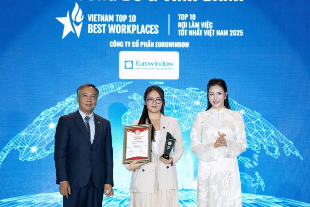 Đại diện Eurowindow đón nhận giải thưởng “TOP 10 Nơi làm việc tốt nhất Việt Nam năm 2025”.